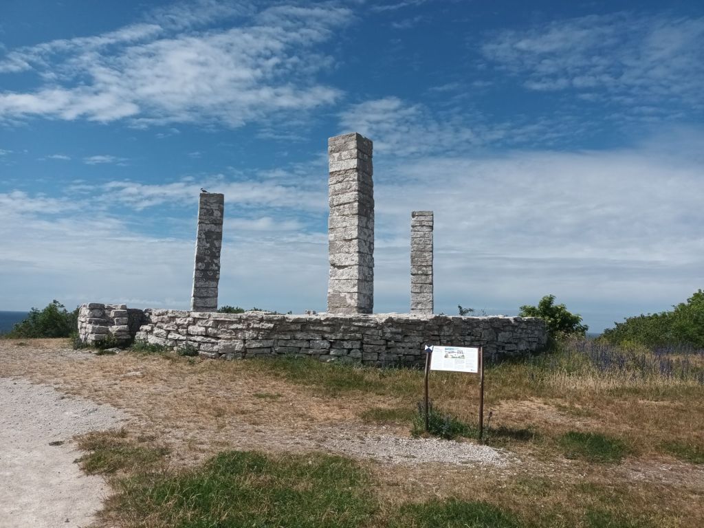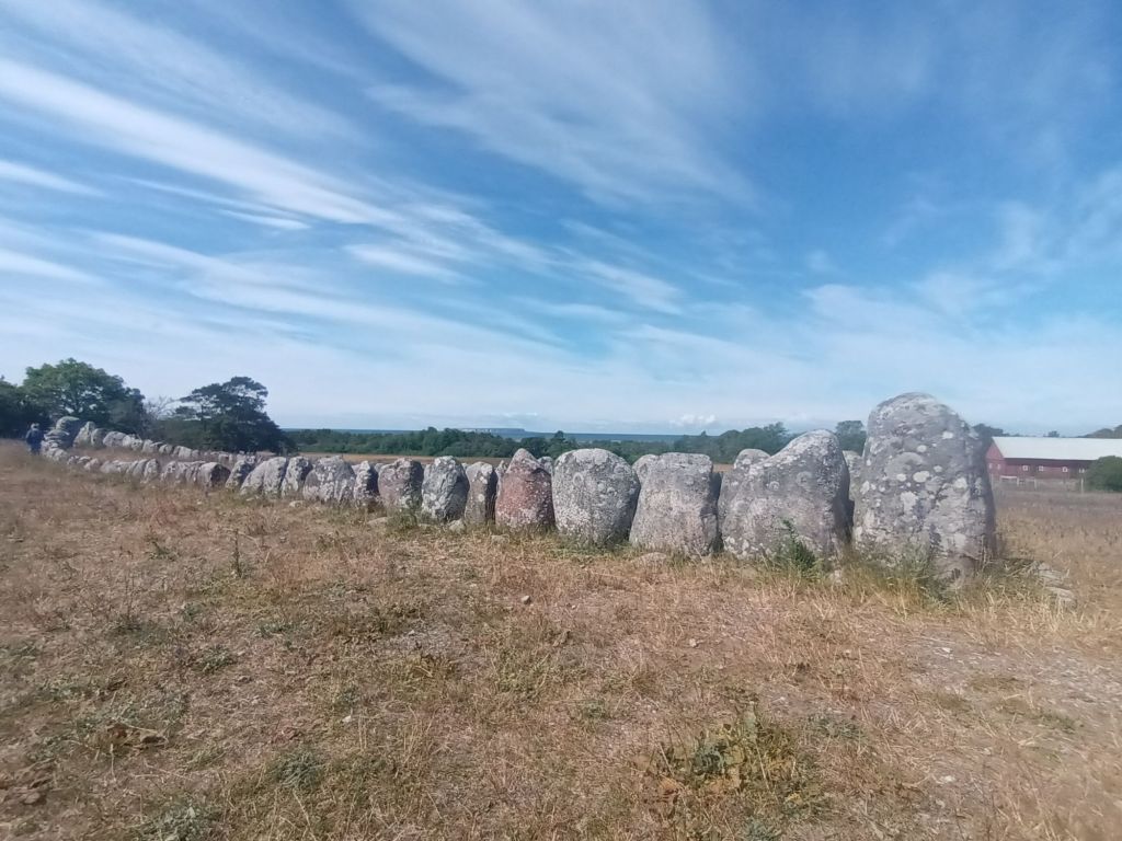 Efter Kastalen i Fröjel blev nästa paus vid Gannarve skeppssättning. I bakgrunden av skeppssättningen kunde man se havet och en av Karlsöarna.
