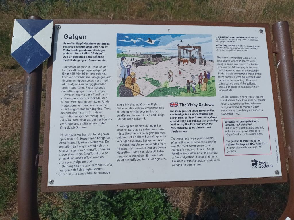 Under vår vistelse på Gotland kunde vi se resterna av galgen på galgberget varje dag eftersom det låg på en höjd ovanför campingen där vi bodde, men det var lättare att komma dit med bilen från ett annat håll. Dit åkte vi senare på eftermiddagen.