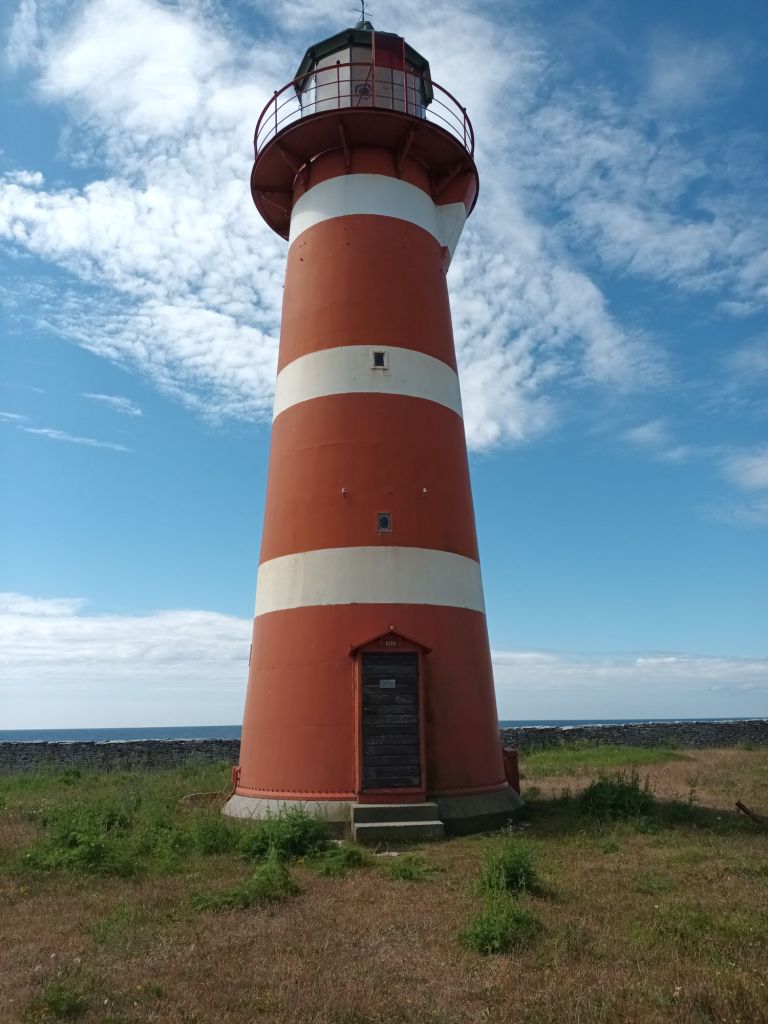 Det var väldigt blåsigt den här dagen så det blev bara ett snabbt stopp för att kolla in fyren innan vi åkte vidare mot Katthammarsvik där vi åt lunch. Vi hann precis komma in på restaurangen och beställa mat innan det kom en regnskur.