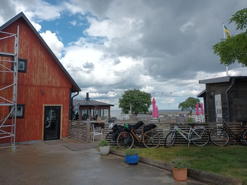 Efter lunchen åkte vi vidare mot Ljugarn. Lämpligt nog klarnade vädret upp då och solen tittade fram. På vägen mot Ljugarn fanns flera ställen som jag gärna hade stannat till vid, men det får kanske bli en annan gång när barnen är äldre. Nu blev det istället Ljugarns strandcafé där barnen kunde leka lite och jag drack en kopp kaffe.