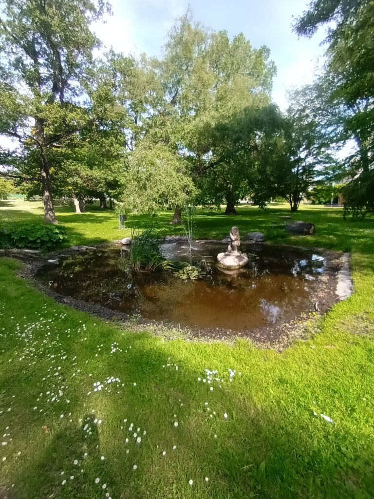 Statyn på torget minner om en tid då Slite var hemmahamn för sjömän, antar jag. Vi fortsatte promenaden genom parken och kom vidare till hamnen.