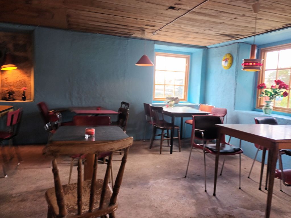 Det var väldigt blåsigt denna torsdag i juni så det blev bara två stopp på Fårö innan vi åkte tillbaks till stugan i Visby. Det första stoppet blev på Kutens bensin & Creperie Tati där vi intog dagens lunch.