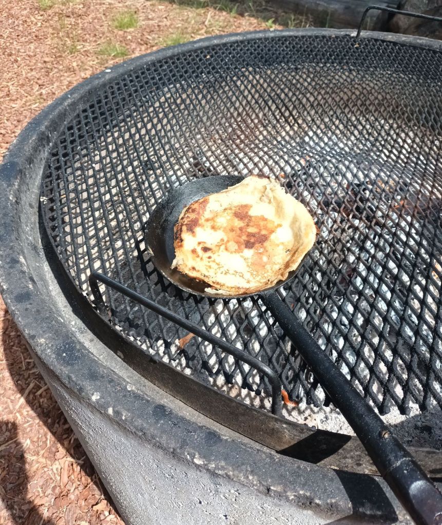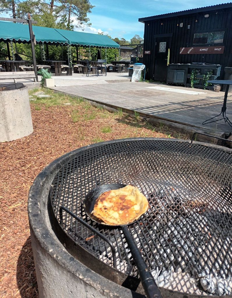 I äventyrsbyn kunde man testa på att steka plättar över öppen eld.