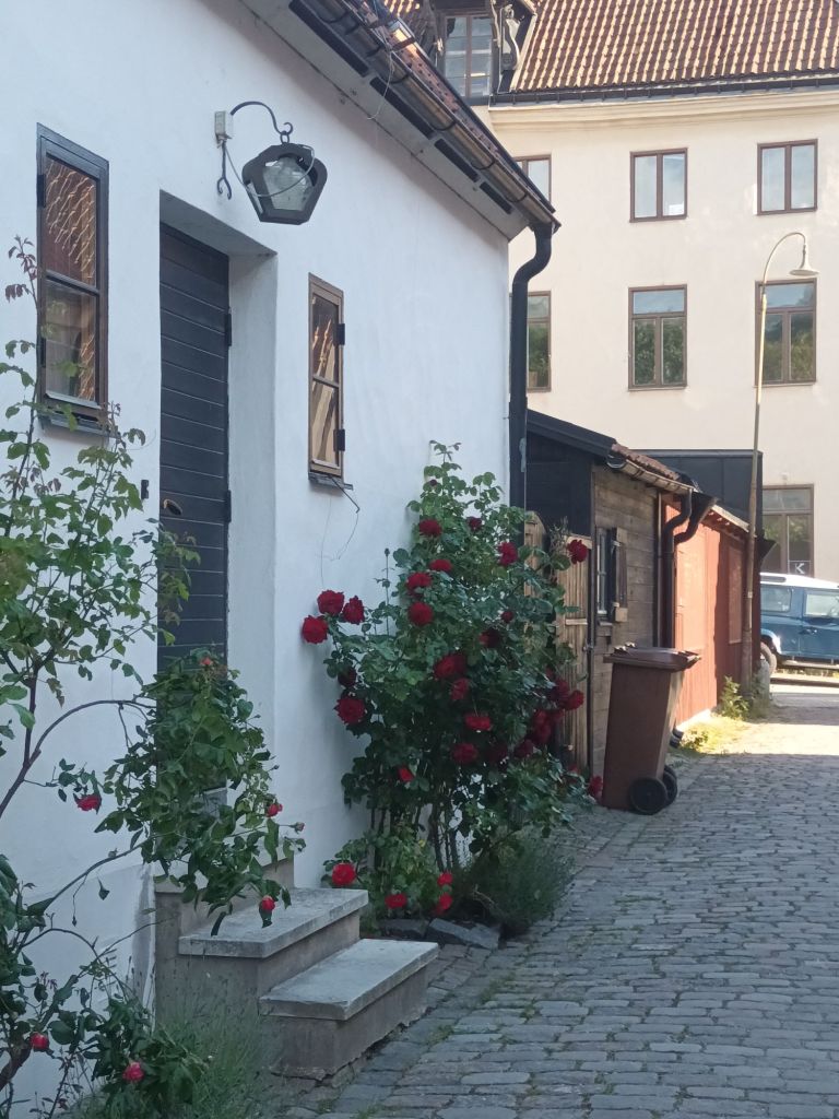 Efter fika och lek styrde vi kosan tillbaka till campingen och vår stuga. Efter middagen som vi intog i stugan tog vi en promenad längs strandpromenaden in mot innerstaden med siktet inställt på Visbys botaniska trädgård. Den botaniska trädgården upplevde jag som en skuggig lummig oas som kontrast till ringmuren och gränder kantade med gatsten och murade stenhus.