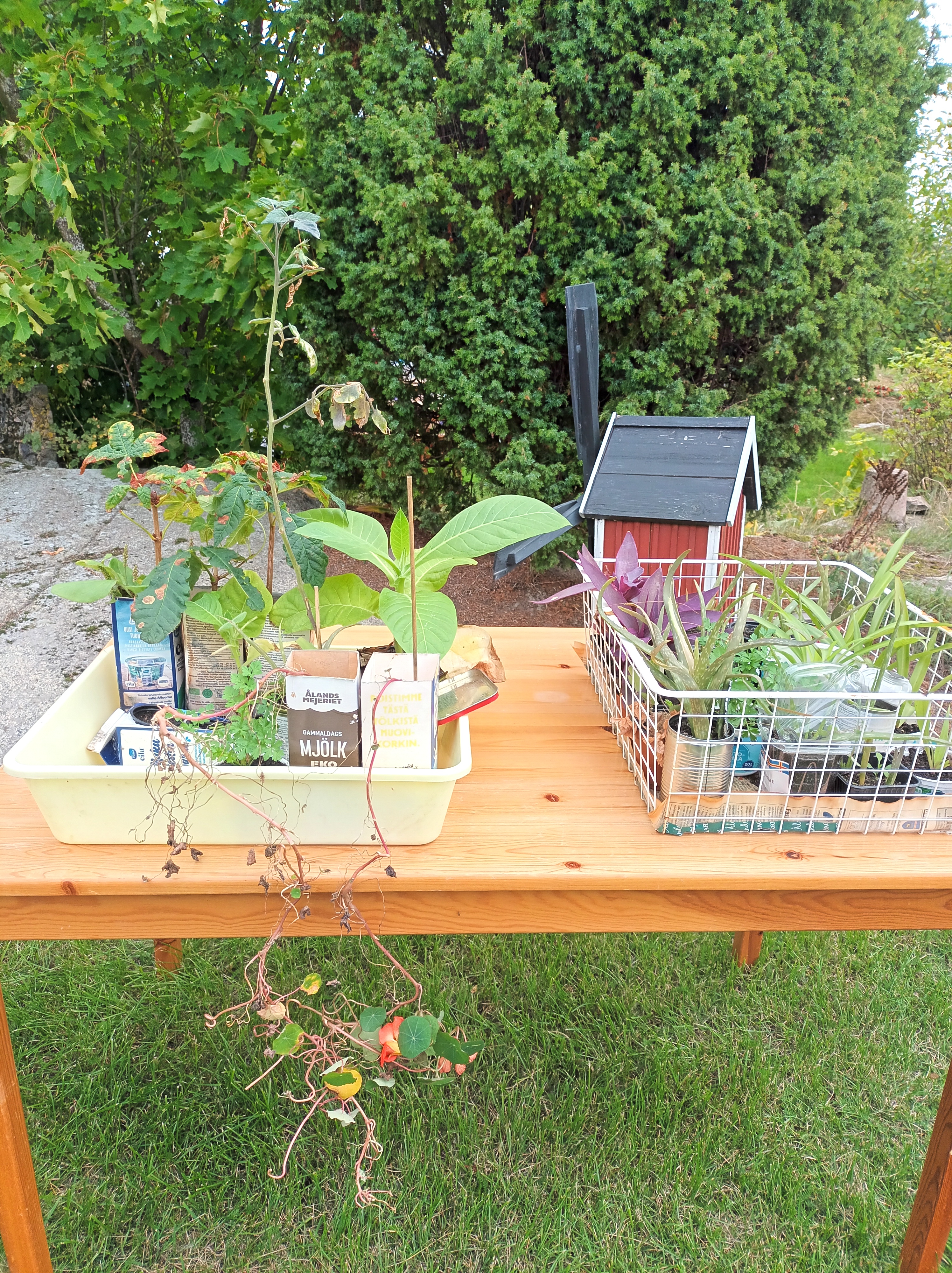 Vi började med att besöka Soiles trädgårdscafé. Där kunde man bl.a. fika och köpa plantor och hantverk.