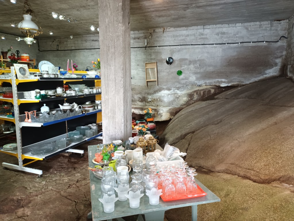 Galleri Berghäll är både ett galleri och en loppis. I loppisen på källarvåningen som ger galleriet skäl för dess namn fanns mestadels husgeråd, glas och porslin av olika slag.