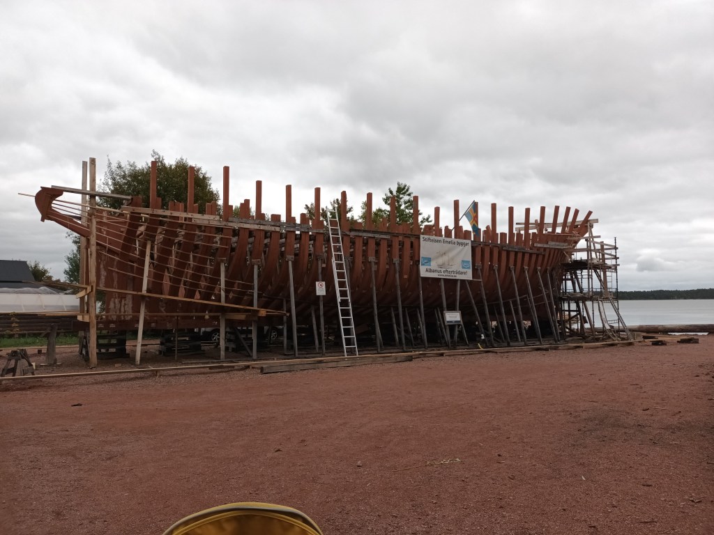 På söndagen besökte den lilla familjen Sjökvarteret i Mariehamn. Vi tittade på båtar. Både sådana som låg vid kaj och sådana som ännu inte var färdigbyggda.