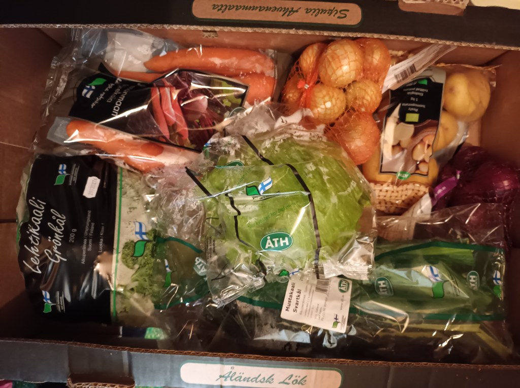 Valet föll på en låda åländska äpplen och en låda blandade grönsaker.