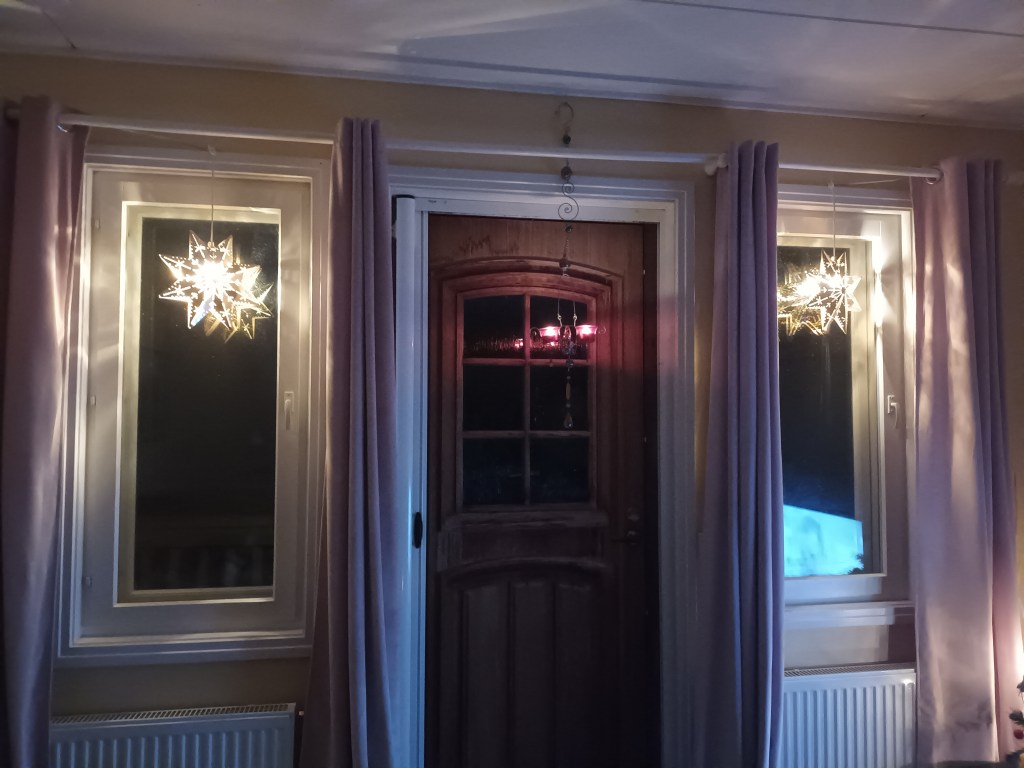 Jag tycker det är fint att ha adventsljusstakar och/eller adventsstjärnor i många fönster, gärna alla som går. Extra fint blir det när man sätter upp dem på oväntade platser. Jag har bl.a. sett en adventsljusstake i ett badrumsfönster och en adventsstjärna i ett båthus.