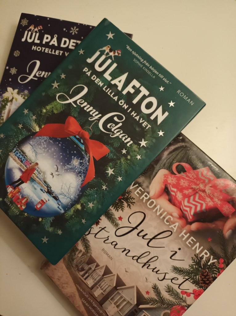 För egen del så läser jag gärna lite feelgood-romaner i julmiljö. Dessa har jag lånat från biblioteket. Får se om jag hinner läsa ut någon innan julen sopats ut.